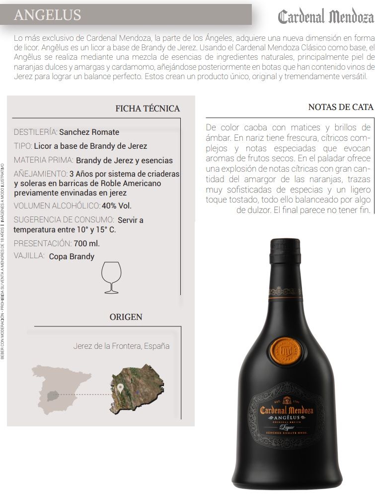 Especificaciones para Licor de Brandy Cardenal Mendoza Angelus 40º 1x700cc