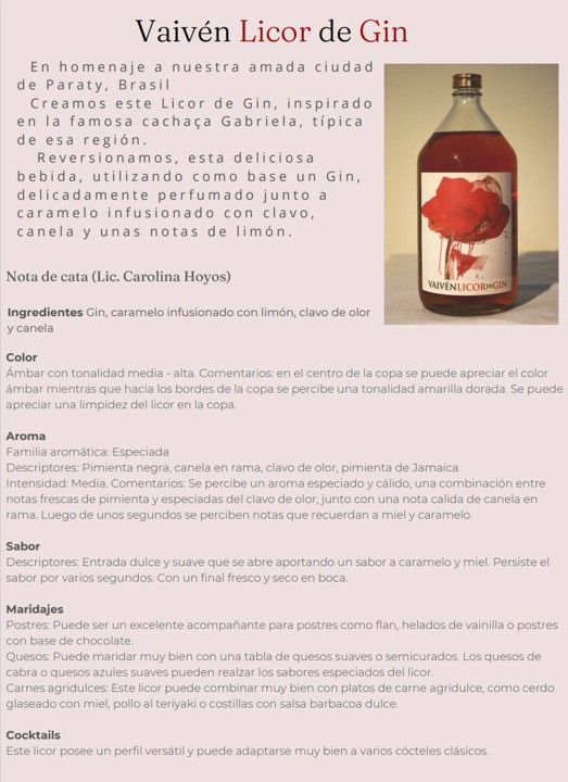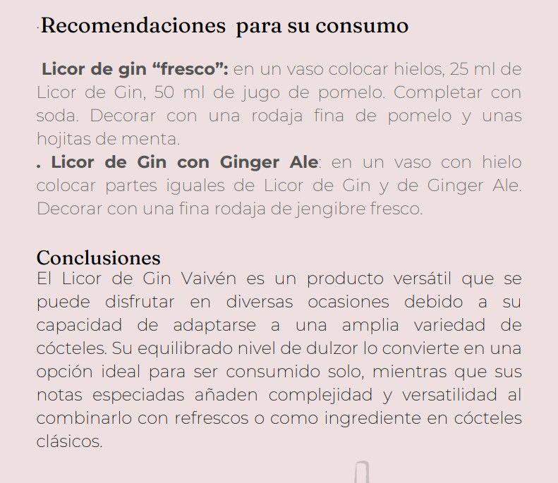 Especificaciones para Licor de Gin Vaiven 29° 1000cc
